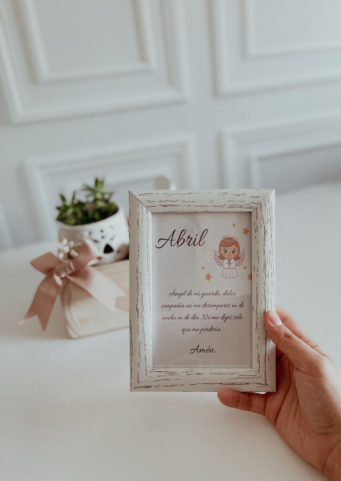 - 1 PORTARETRATO CON ORACIÓN ANGEL DE LA GUARDA PERSONALIZADO.